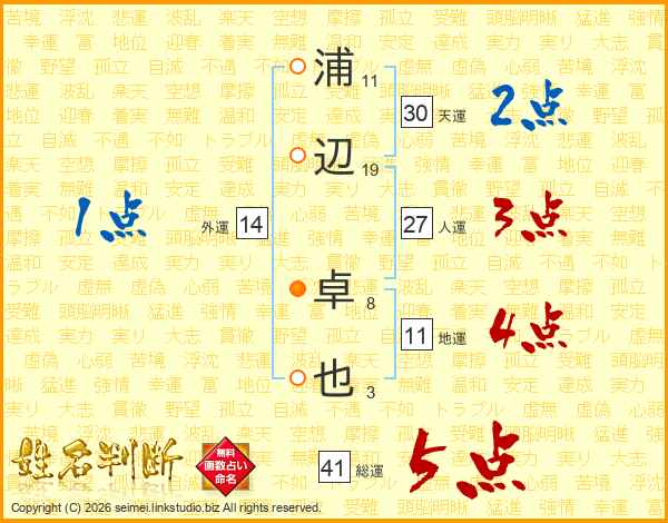 浦辺卓也さんの総運は41画の5点!