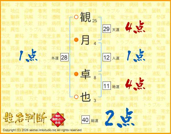 観月卓也さんの総運は40画の2点!