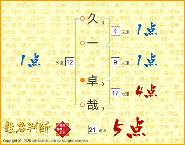 久一卓哉さんの総運は21画の5点!