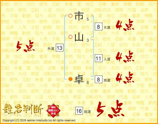 市山卓さんの総運は16画の5点!