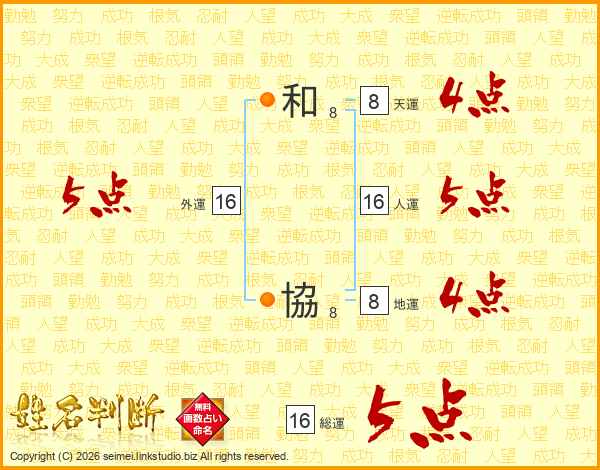 和協さんの総運は16画の5点!