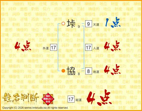 垰協さんの総運は17画の4点!