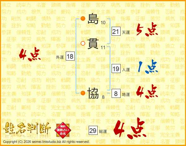 島貫協さんの天運は21画の5点!