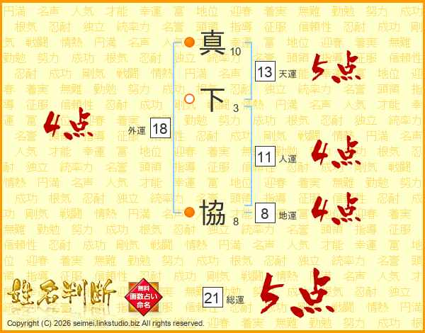 真下協さんの総運は21画の5点!
