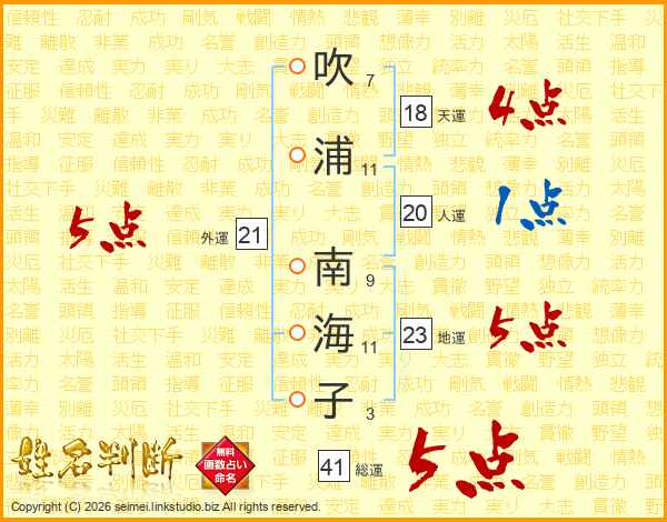 吹(7画)浦(11画) 南(9画)海(11画)子(3画)