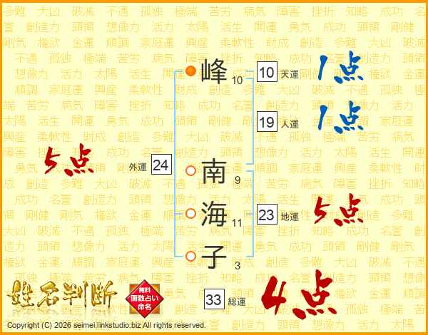 峰南海子さんの総運は33画の4点!