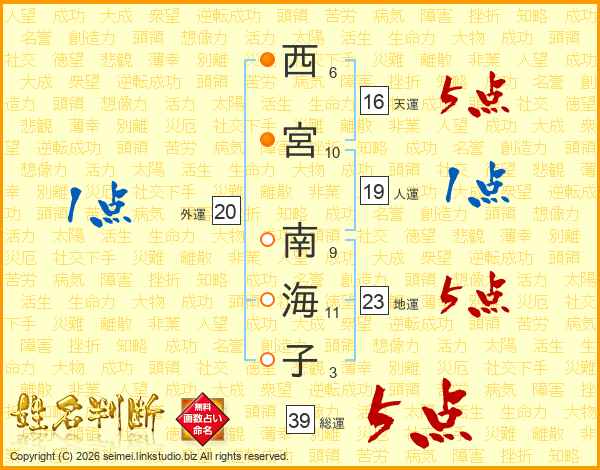 西宮南海子さんの総運は39画の5点!
