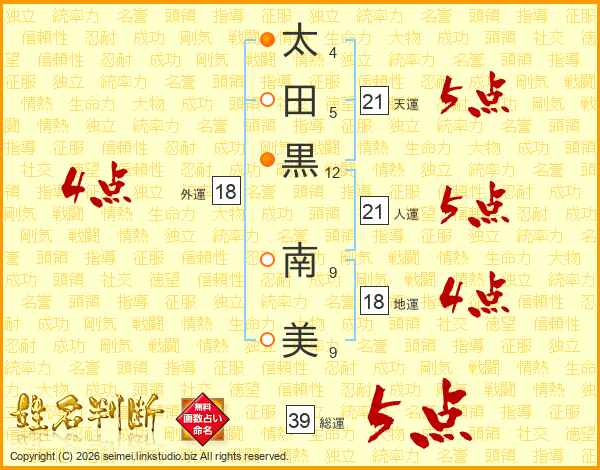 太田黒南美さんの総運は39画の5点!