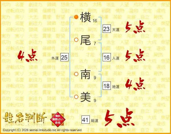 横尾南美さんの総運は41画の5点!