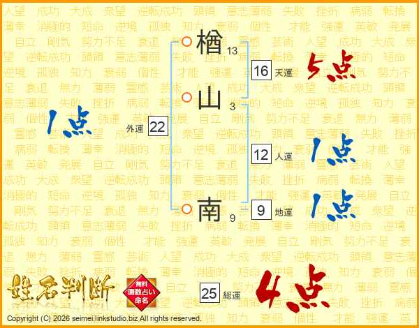 楢山南さんの総運は25画の4点!