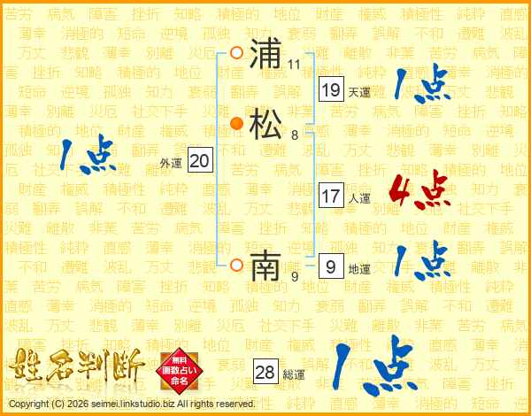 浦松南さんの人運は17画の4点!