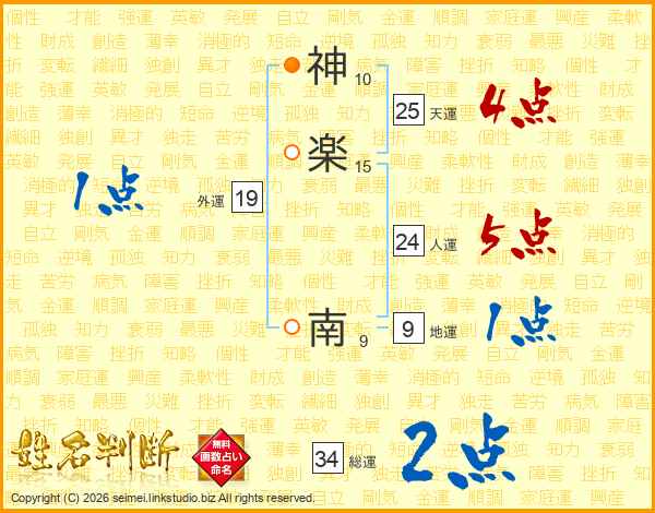 神楽南さんの総運は34画の2点!