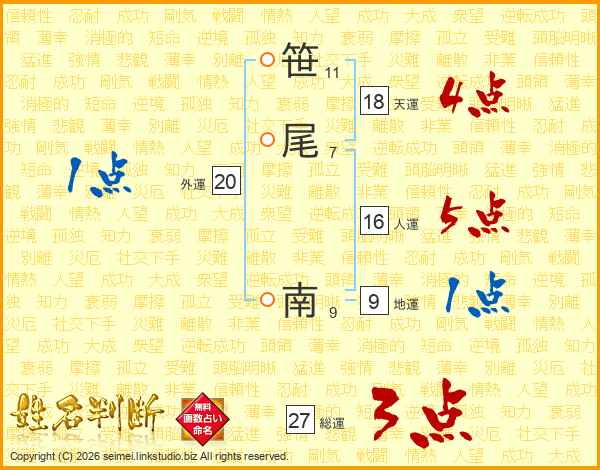 笹尾南さんの総運は27画の3点!