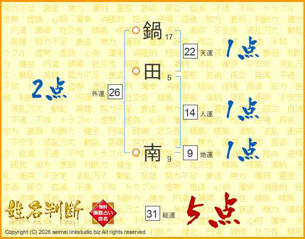 鍋田南さんの人運は14画の1点!