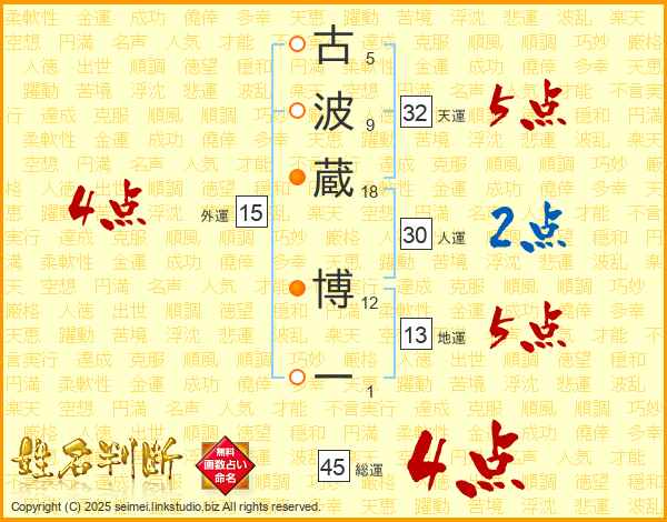 古波蔵博一さんの総運は45画の4点!