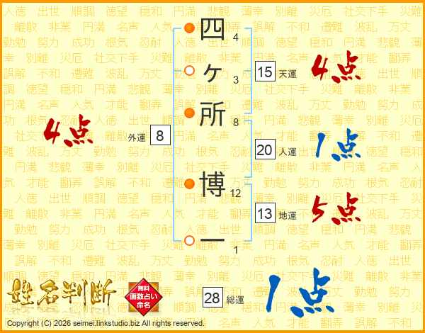 四ヶ所博一さんの総運は28画の1点!