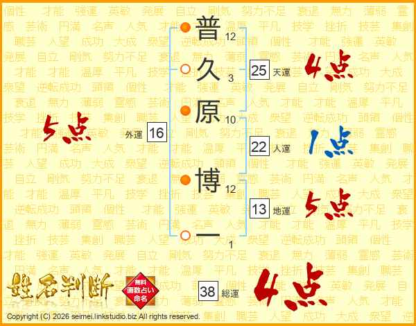 普(12画)久(3画)原(10画) 博(12画)一(1画)
