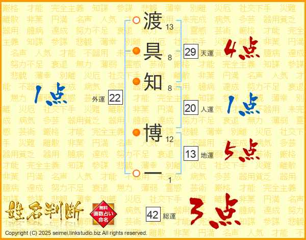 渡(13画)具(8画)知(8画) 博(12画)一(1画)