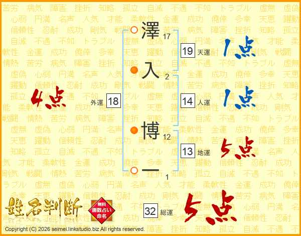 澤入博一さんの総運は32画の5点!