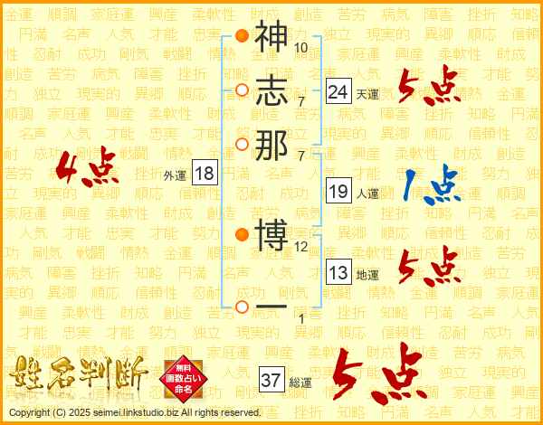 神(10画)志(7画)那(7画) 博(12画)一(1画)
