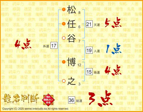 松任谷博之さんの天運は21画の5点!