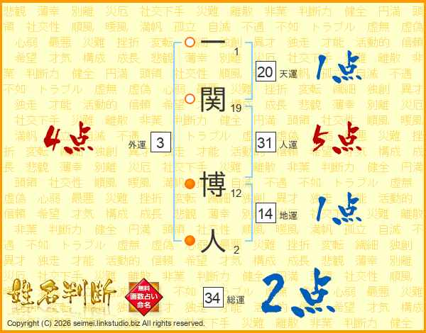 一関博人さんの人運は31画の5点!