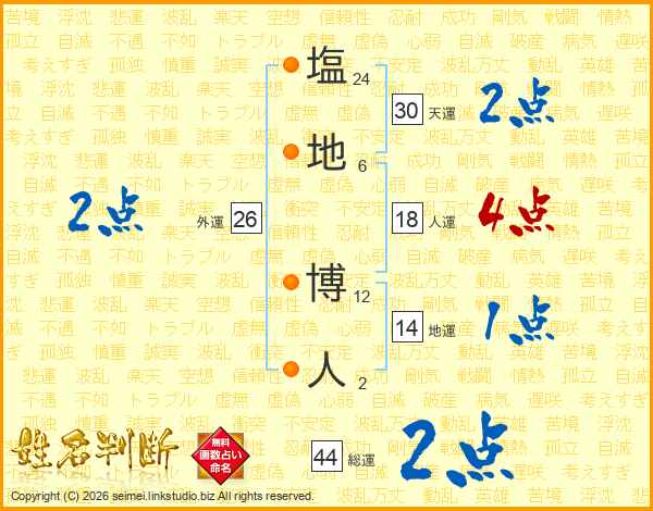 塩地博人さんの総運は44画の2点!