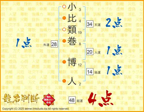 小比類巻博人さんの総運は48画の4点!