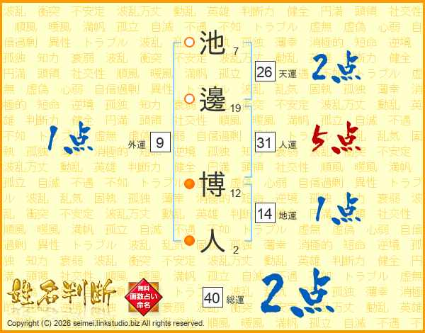 池邊博人さんの総運は40画の2点!