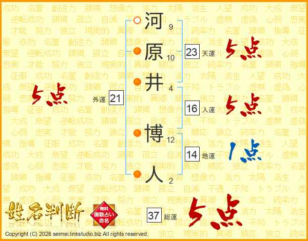 河(9画)原(10画)井(4画) 博(12画)人(2画)