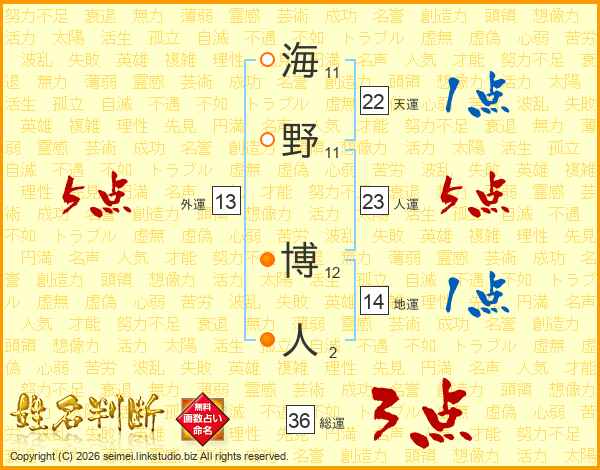 海野博人さんの総運は36画の3点!