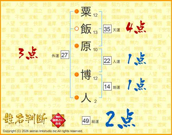 粟(12画)飯(13画)原(10画) 博(12画)人(2画)