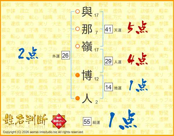 與(17画)那(7画)嶺(17画) 博(12画)人(2画)