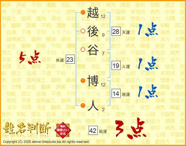 越(12画)後(9画)谷(7画) 博(12画)人(2画)