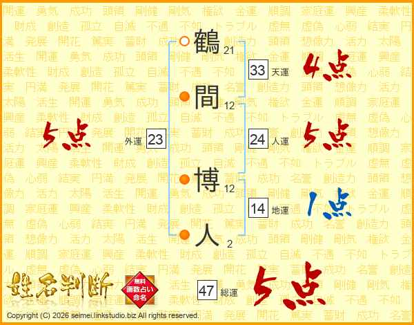 鶴間博人さんの総運は47画の5点!