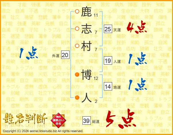鹿(11画)志(7画)村(7画) 博(12画)人(2画)
