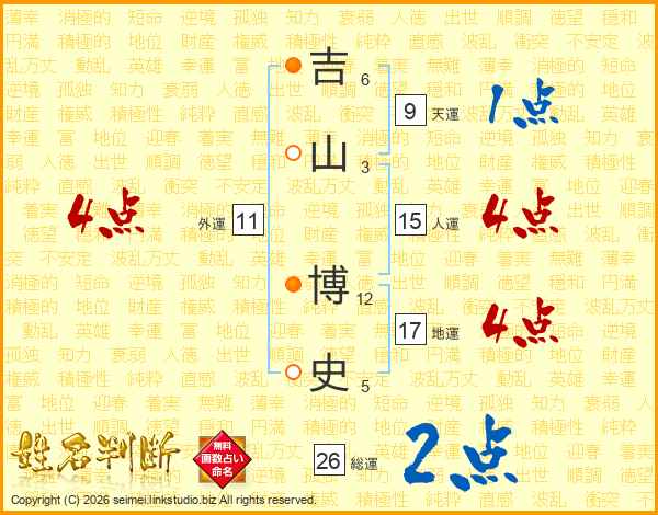 吉山博史さんの人運は15画の4点!