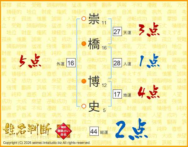 崇橋博史さんの総運は44画の2点!