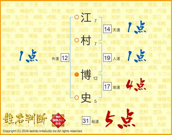 江村博史さんの天運は14画の1点!