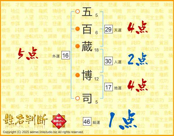 五(5画)百(6画)蔵(18画) 博(12画)司(5画)