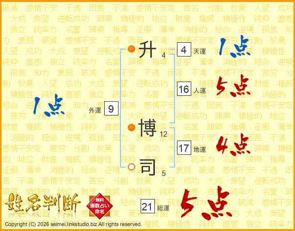升博司さんの総運は21画の5点!