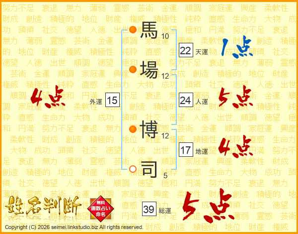 馬場博司さんの総運は39画の5点!