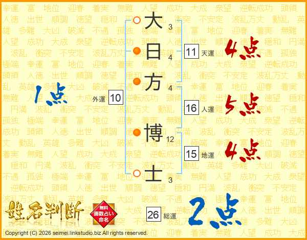 大(3画)日(4画)方(4画) 博(12画)士(3画)