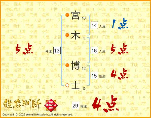 宮木博士さんの総運は29画の4点!
