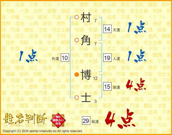 村角博士さんの総運は29画の4点!