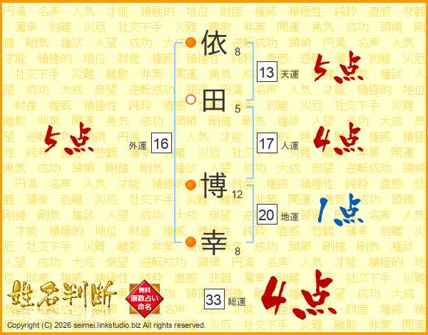依(8画)田(5画) 博(12画)幸(8画)