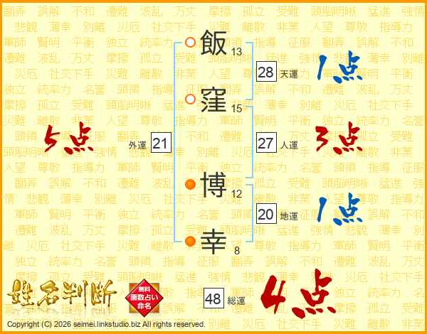 飯(13画)窪(15画) 博(12画)幸(8画)