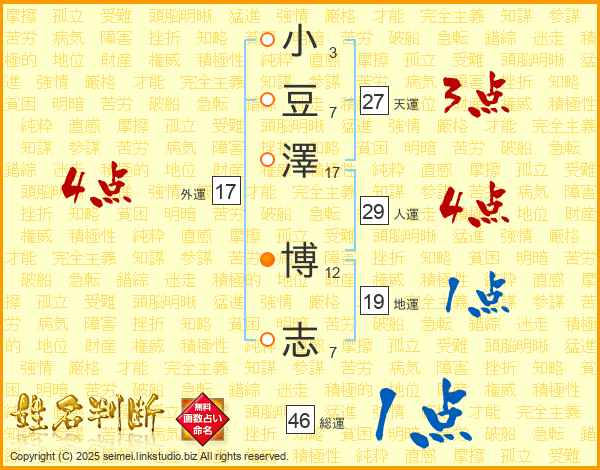 小(3画)豆(7画)澤(17画) 博(12画)志(7画)