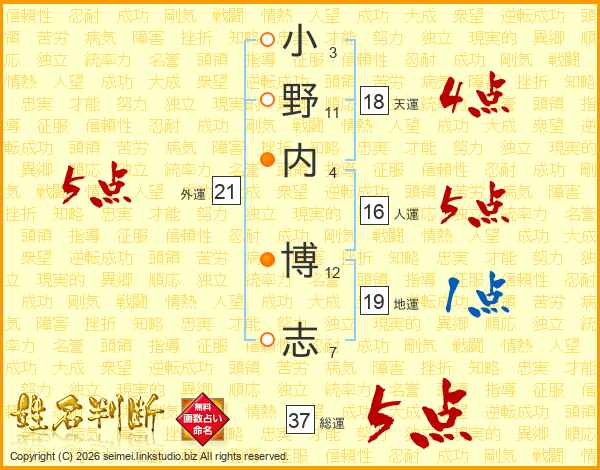 小(3画)野(11画)内(4画) 博(12画)志(7画)