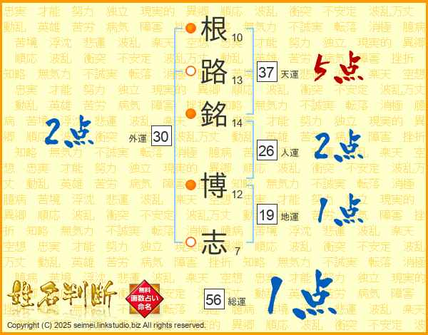根路銘博志さんの天運は37画の5点!